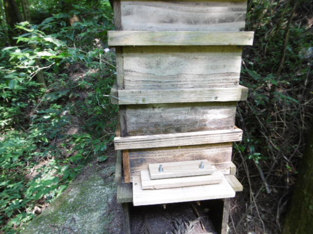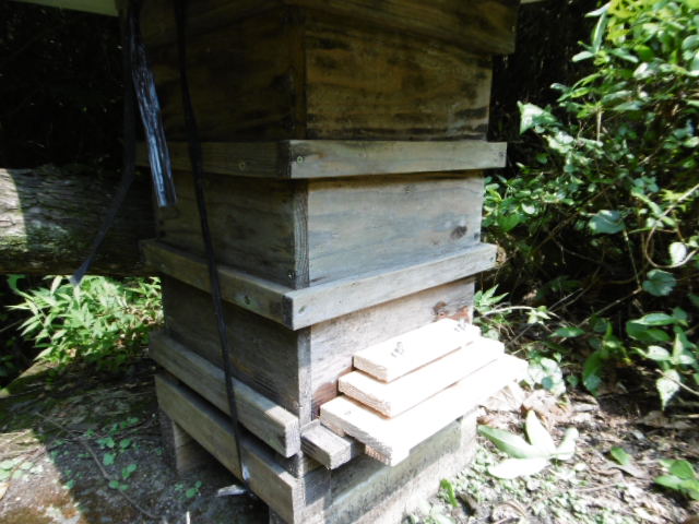 昨日今日はペッタンコにくっついたやつはいないので小康状態ですが、今朝内検に行った時1匹ブーンと巣箱めがけてやってきました。取り逃がしましたが、一見さんではなさそうな振る舞いだったので、そのうちに第3波来襲するでしょう。ペッタンコ3枚に増強して備えます。