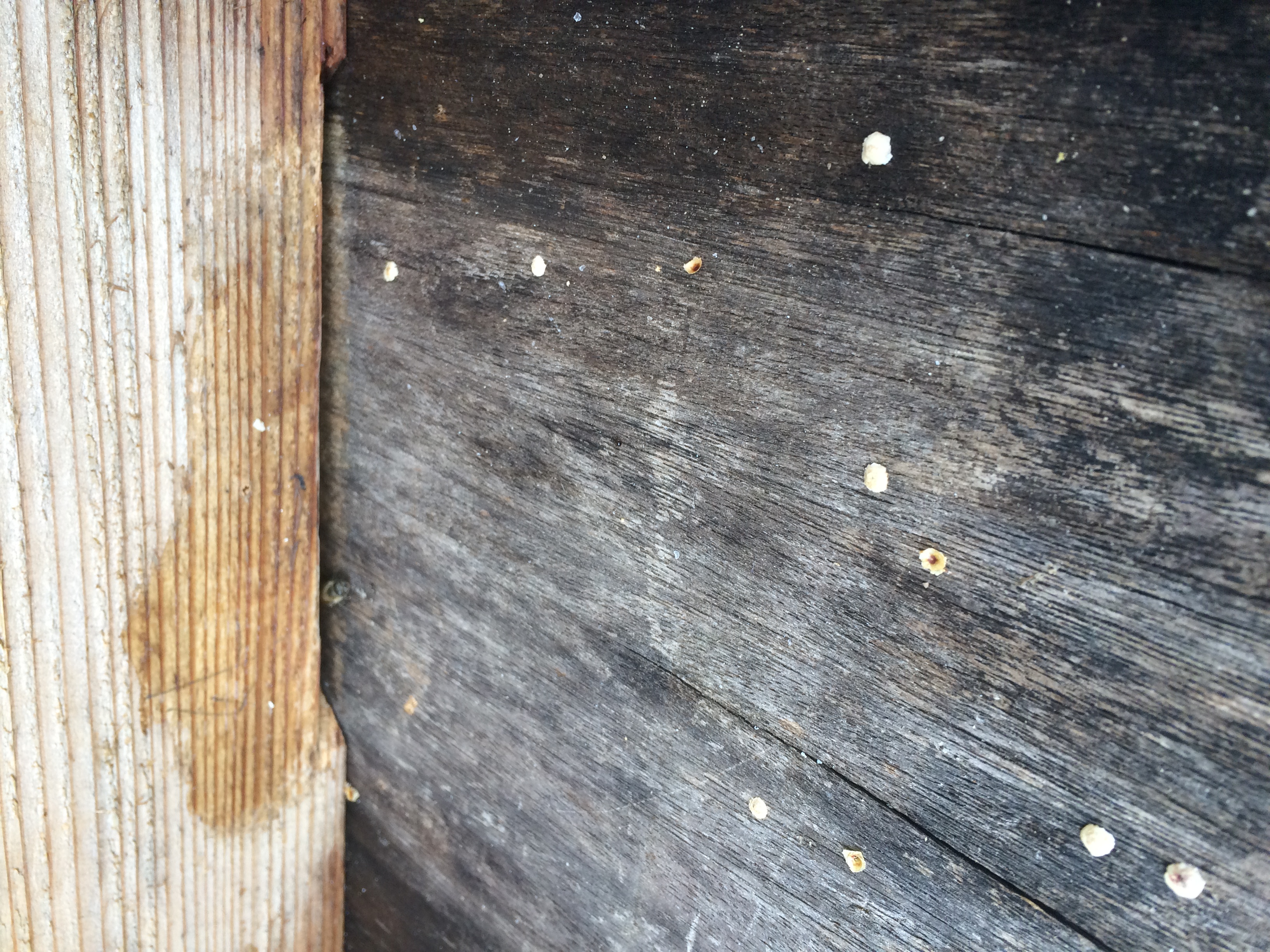 この日同時に幼蜂の死骸も数匹、箱の下に見つけました。