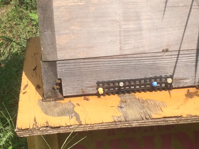 今朝の点検では、継ぎ箱に上がっている蜂が少し増えてきた感が有ります(写真添付)。ただ、今日は台風で外勤が低調に伴った一過性のものか否かは?です。