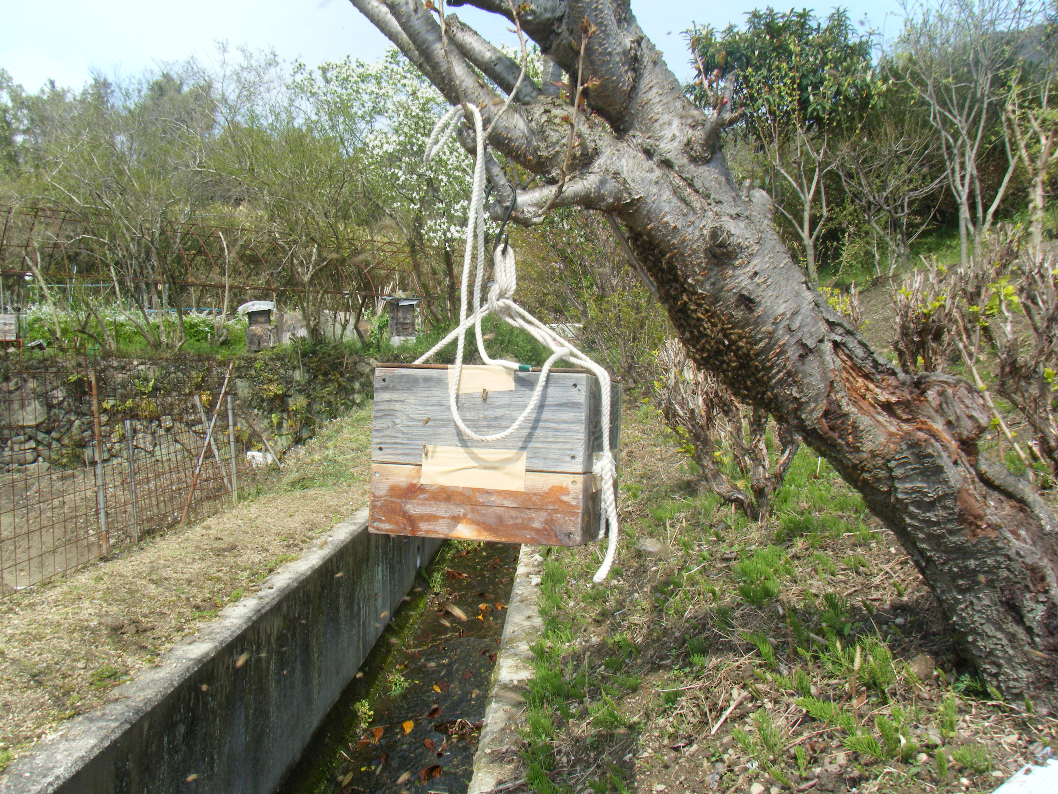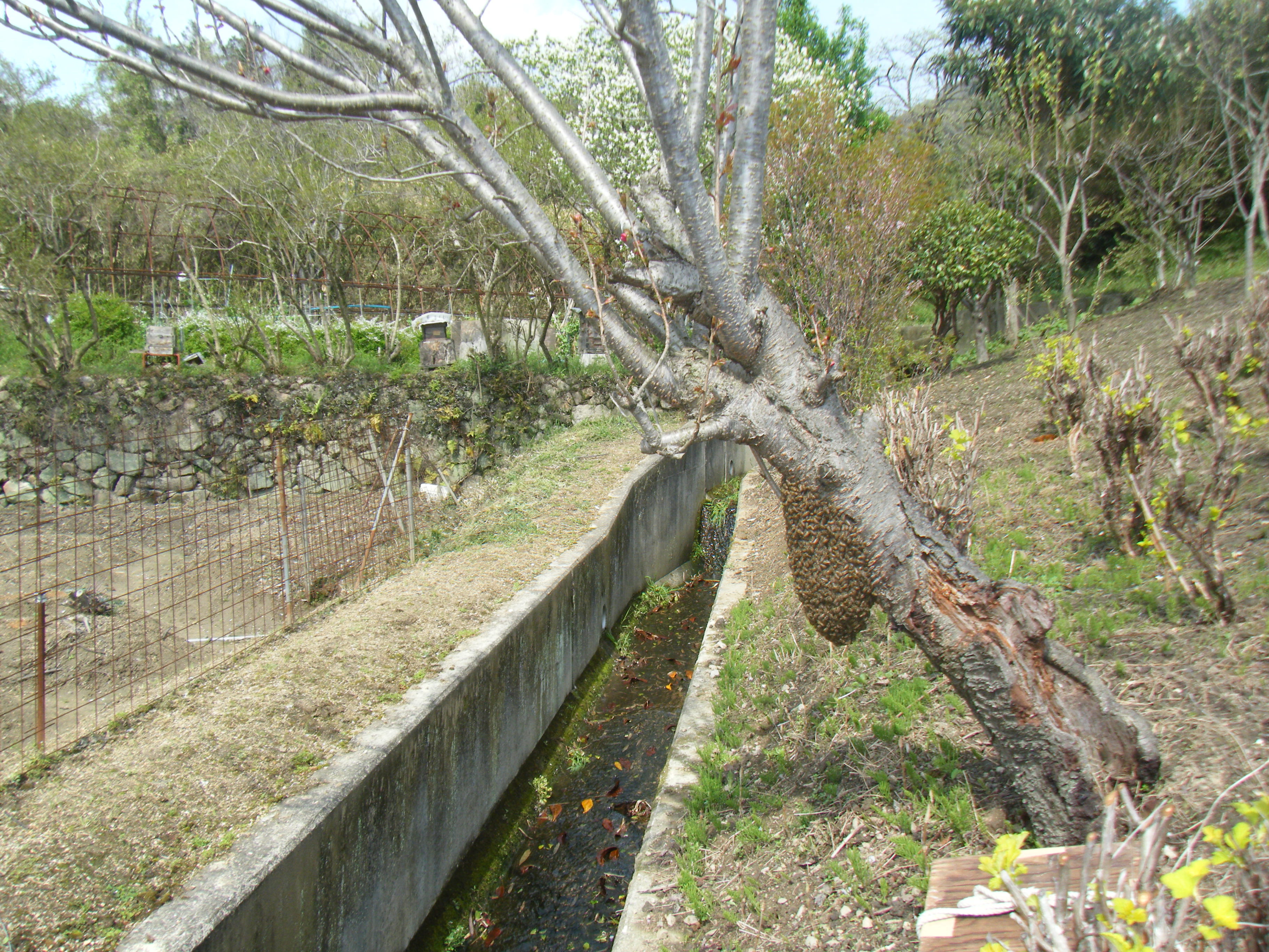 遠くの蜂場ですから、キンさん頼りの捕獲です。