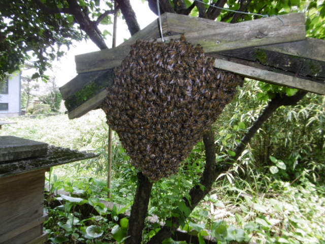捕獲依頼 by · 2017年4月29日 (ゲスト=霧もkkp島) 今日、捕獲依頼が有り出向くと西洋蜜蜂でした。重箱は車に常備していますが、西洋はGW明けからなので準備しておらず自宅に洋箱を取りに帰っての捕獲となりました。 ひごモッコクさんのフローハイブ、フィールドテスト用には最適な強群です。ラ式巣枠3枚では収まり切れない大きさです。。。ゴールデンウィーク明けにお出で下さい。 巣碑の付いた巣枠と洋箱は持って来て下さいネ~。 自宅群の日本蜜蜂やっと分蜂し集蜂板に取り付いていました。大きな群でした。 シェアする