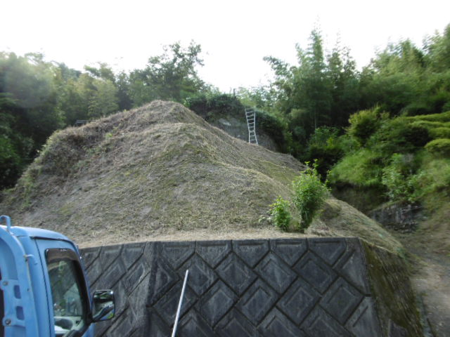 スコップで掘り起こすと大スズメ蜂が飛び出して来るのをバーナーで処理。