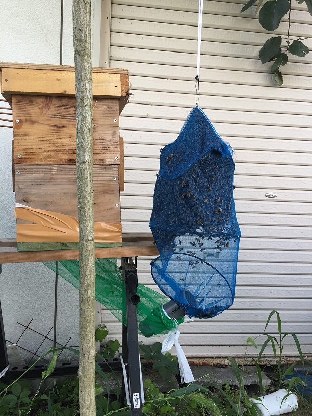 > 網つけたままの間蜂たちは出入りできない状態なのですか?場所も変わっているようですが網付きで落ち着かせてから長距離移動ということなんですよね??
