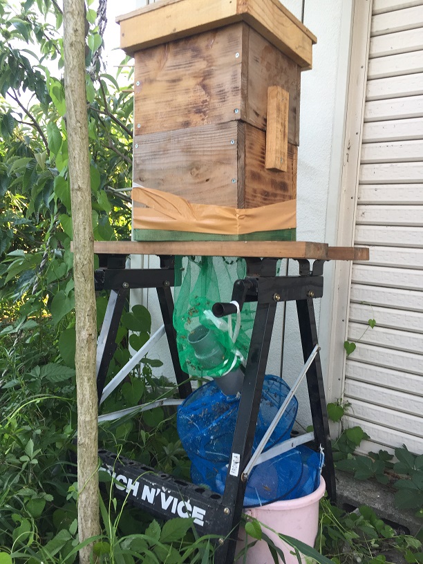 巣板をセットした巣箱への捕獲蜂群移動方法として