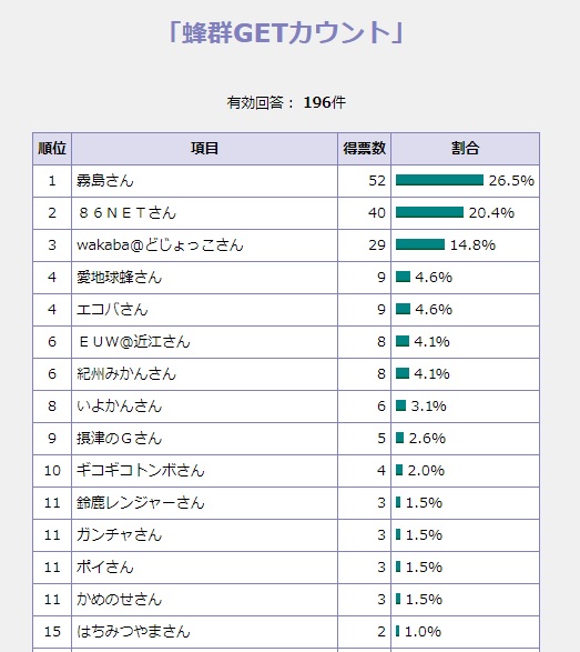 今年も霧島さんがダントツで一位でしたから余裕ですね。