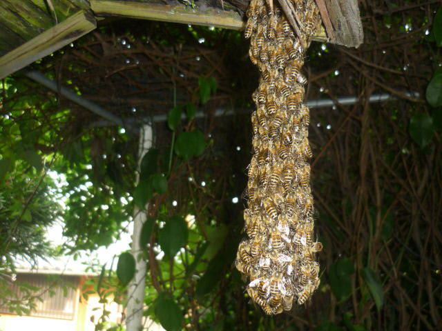 5月8日に自宅の桃ノ木下群より第3分蜂した新女王群です。