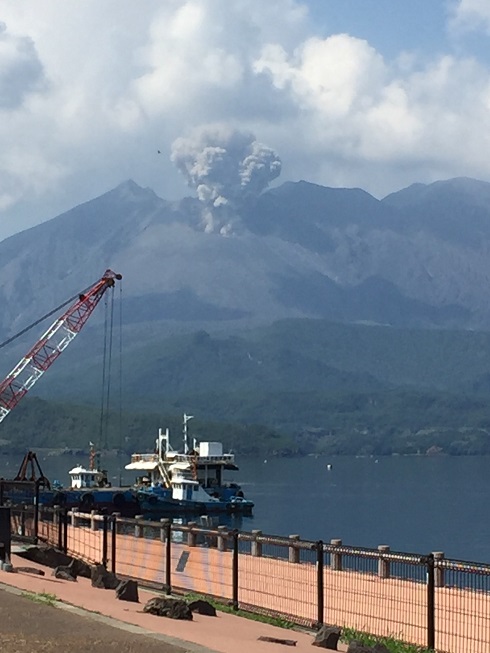 その時ドーンと桜島の爆発音が鳴り響きました。