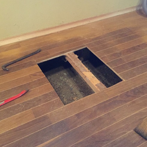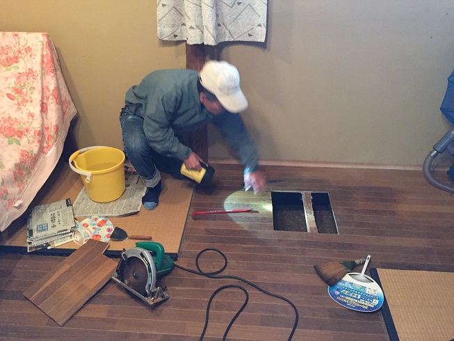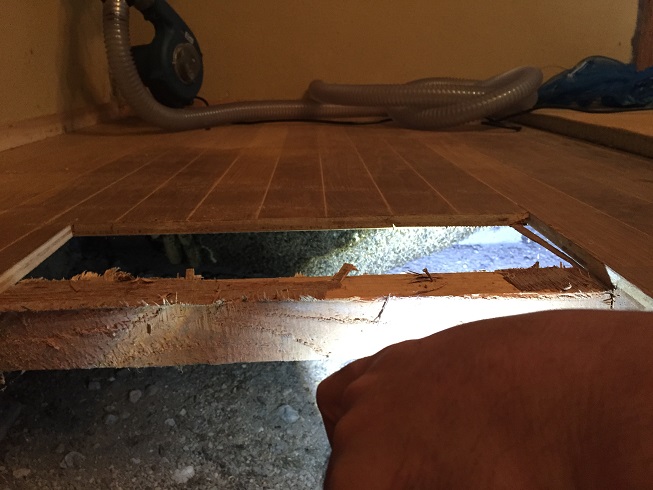 依頼者さんの了解を得て、丸鋸で床を開けました。