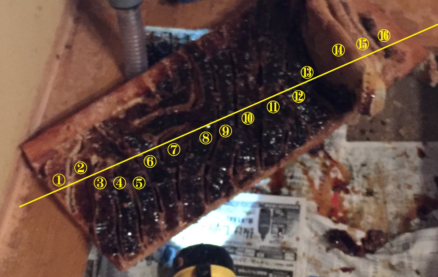 黄色い線上には16枚の巣板がありました。