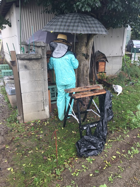 春や夏の場合は、蜜蜂の落ち着き具合をみて三日ほど閉じ込める場合もあります。
